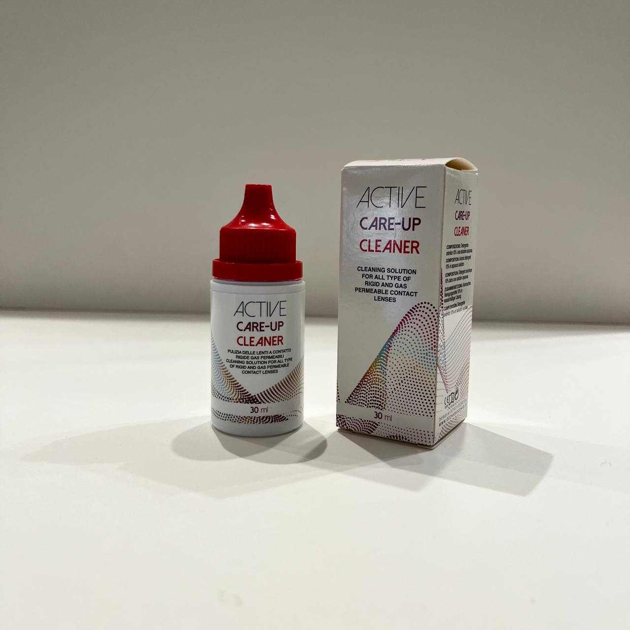 flacone da 30ml di soluzione detergente per lenti a contatto rigide. Con particelle abrasive per eliminare tutti i depositi lipidici.
