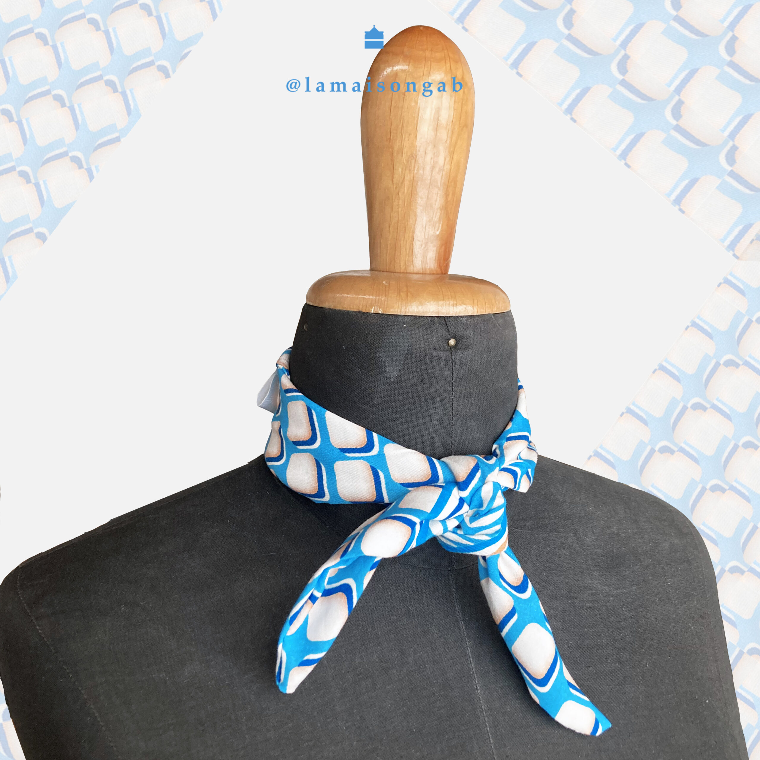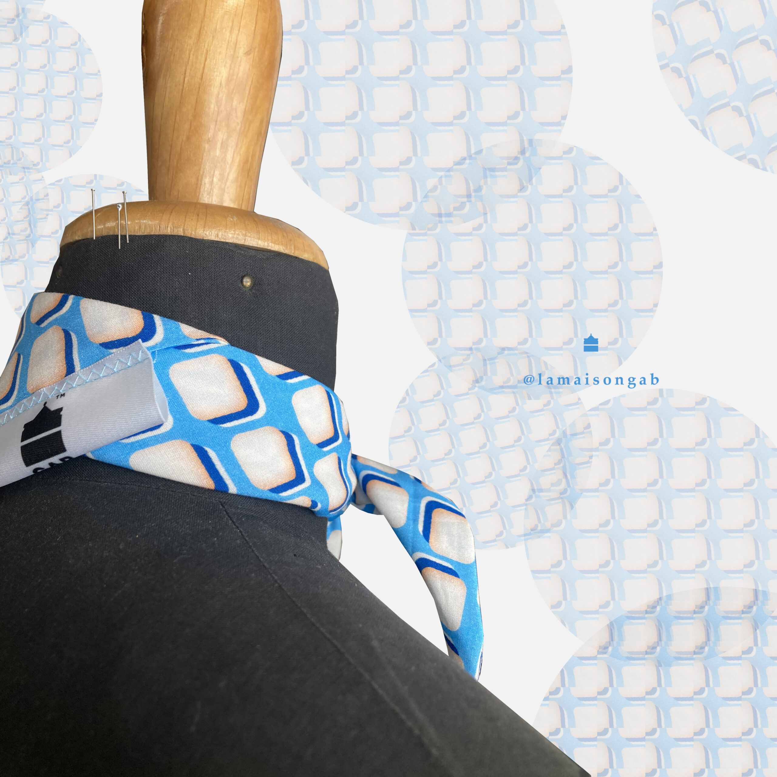 Cache-col da uomo fantasia mediterranea dai colori freschi azzurro e bianco per completare il vostro look estivo in sostituzione alla cravatta.