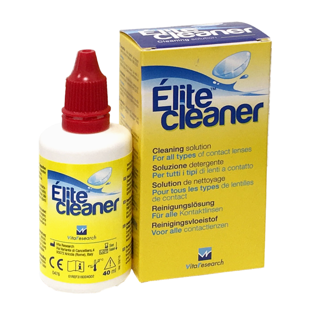Elite cleaner è il nuovo prodotto detergente di Vita Research utile per tutti i tipi di lenti a contatto. Utilizzato prima del normale processo di disinfezione permette di rimuovere in modo più efficace i depositi più tenaci che si legano alla lente a contatto.