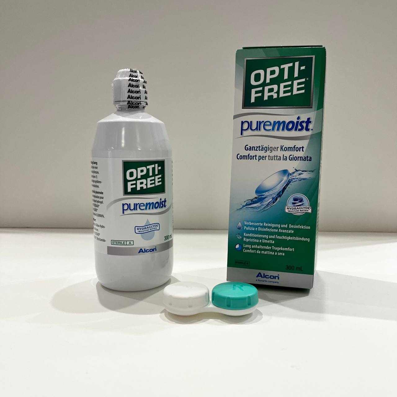La soluzione multiuso OPTI-FREE PureMoist contiene la molecola HydraGlyde che offre un’elevata idratazione della superficie delle lenti a contatto e permette di ridurre la sensazione di secchezza oculare a fine giornata. Inoltre crea una barriera che aiuta a ridurre la formazione di depositi e sporco sulla lente a contatto per prolungare le ore di comfort.