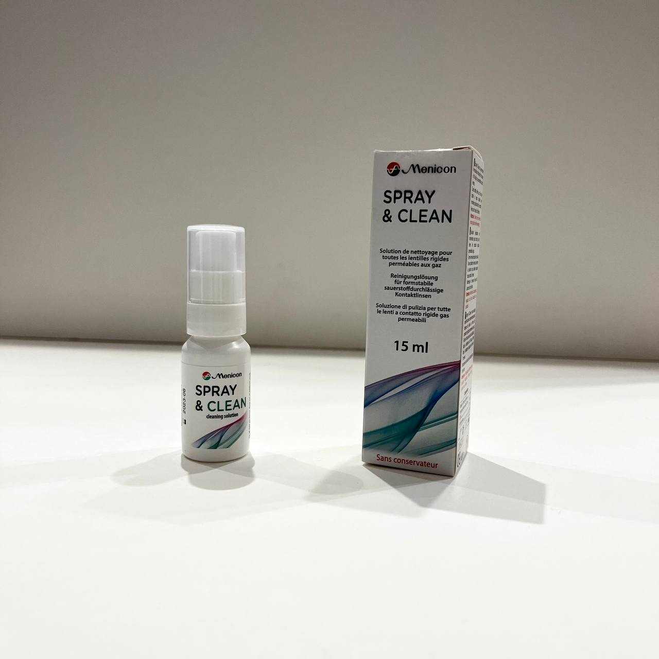 Spray & Clean é un disinfettante e detergente senza di conservanti, per lenti rigide gas-permeabili